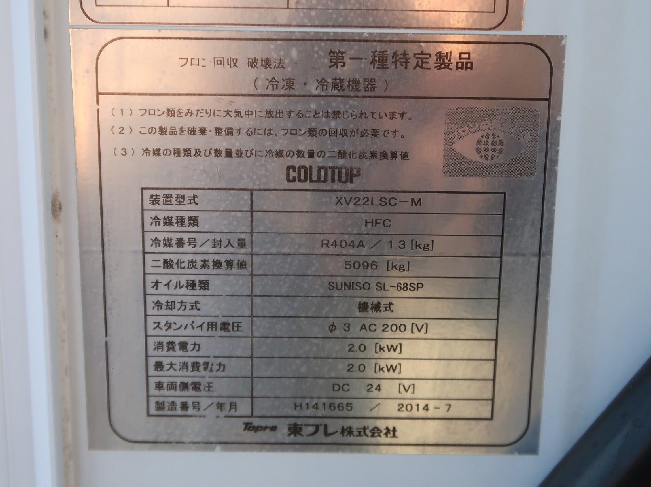 備考 東プレ(H141665 2014-7) リヤシャッター式 サイドドア(スライド式) 床アルミ縞板