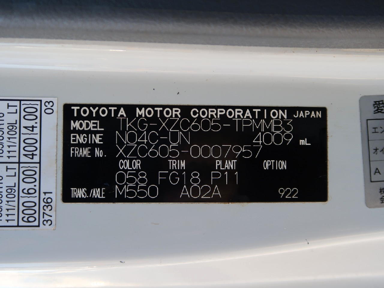 型式 TKG-XZC605