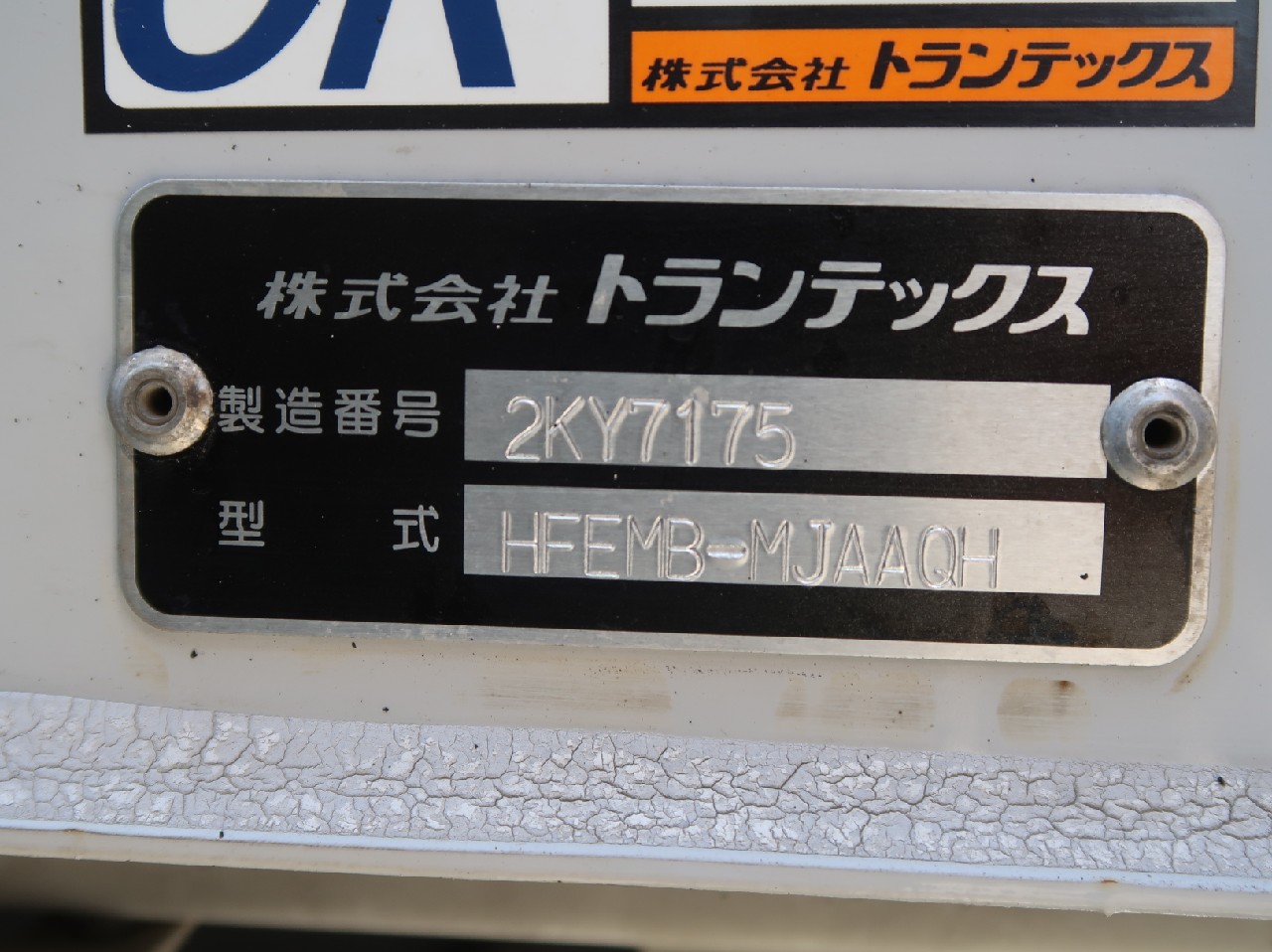 | 備考 | トランテックス(HFEMB-MJAAQH 2KY7175) リヤハネ上げ ラッシングレール2段 内フック(5*2) 1枚アオリ(セーコーラック付) (PG)新明和 マルチゲート PGラジコン付 バックモニター |